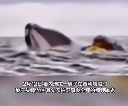视频显示,当时这名男子正在平静的海面上划船,突然间,一头座头鲸浮出水面,张开大嘴将男子含入口中。在座头鲸潜入水中的瞬间,男子又被迅速吐了出来。整个过程虽然短暂,但惊险异常。