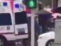 男孩触碰红绿灯信号杆触电倒地 事发地周围道路积水十分严重